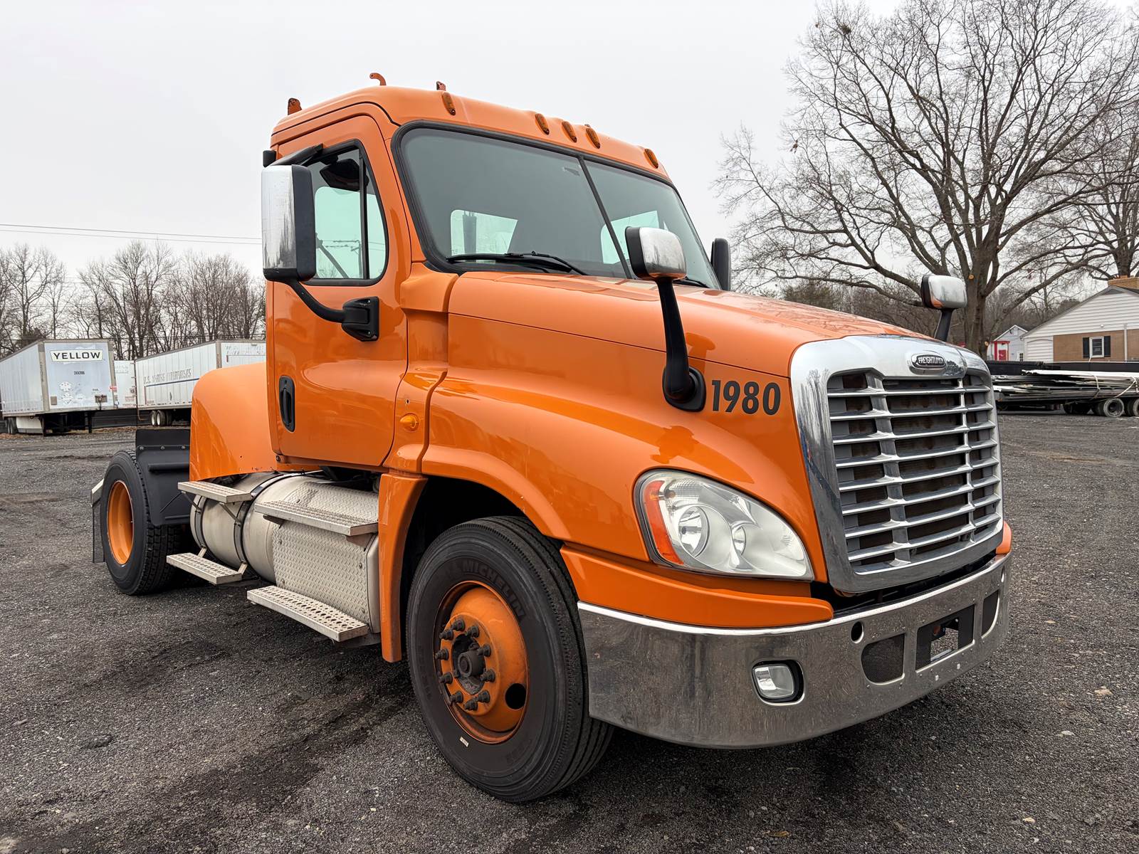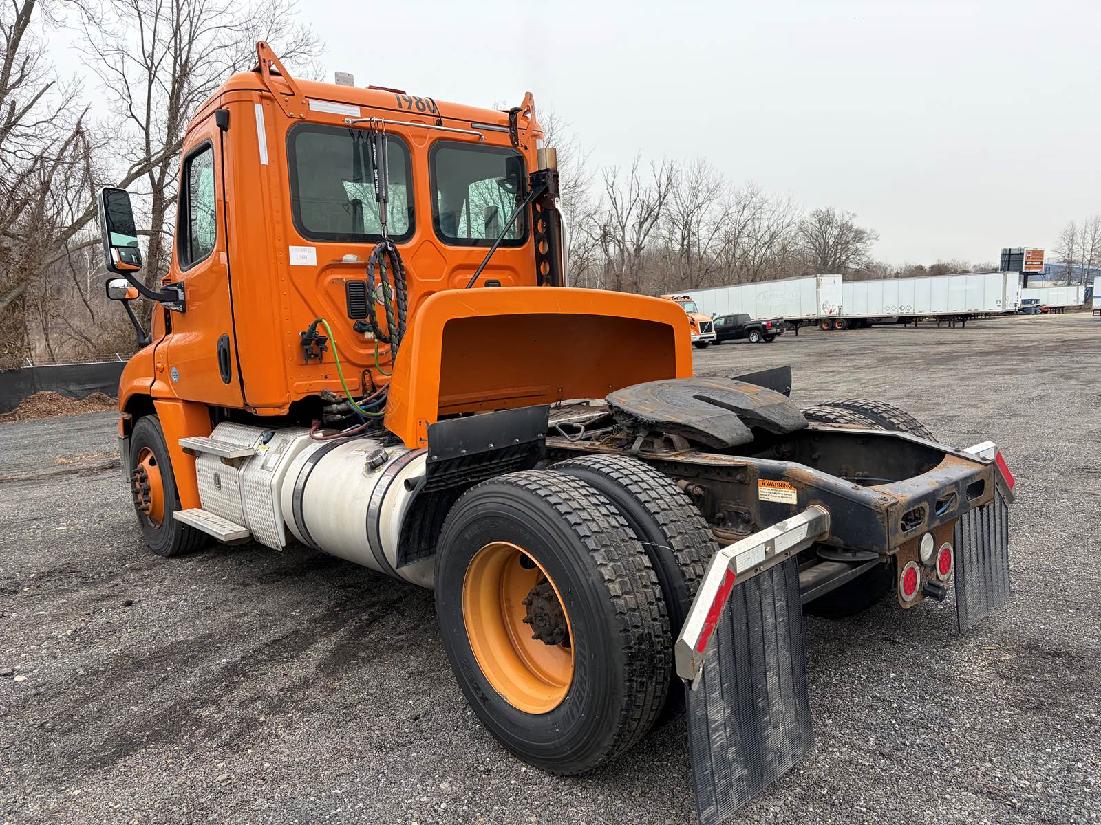 Stock: Call for current Availability VIN: Varies by Unit Year: 2012-2013 Make: Freightliner Model: Cascadia Engine: Detroit DD13 Mileage: Varies by Unit (479k to 620k) Horsepower: 410HP Fuel Type: Diesel Transmission: Automatic Allison or Manual Color: Orange Class: 8 Category: Single Axle Tractor Cab Type: Day Cab GVWR: 35,000lbs Wheelbase: 161 in Front Axle: 12,000lbs Rear Axle: 23,000lbs Brake Type: Air Front Tire: 11R22.5 Rear Tire: 11R22.5