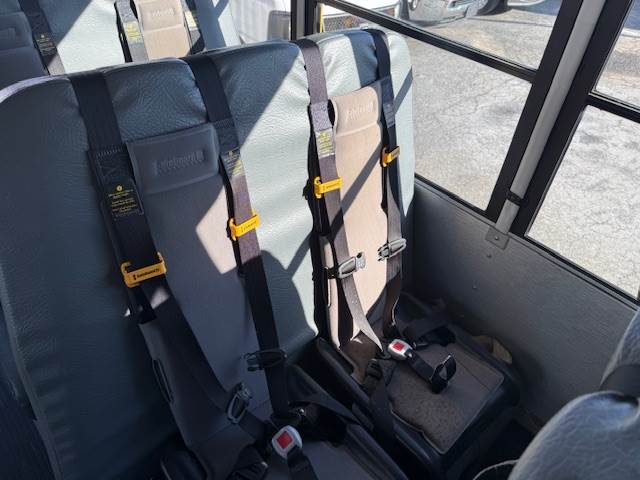 This bus features a comprehensive safety package, including 22 new SafeGuard SuperSTAR Restraints (F150172), valued at $5,836.00. Each restraint is designed with advanced car-seat technology for enhanced safety and versatility, offering a central adjust system for quick one-pull tightening.