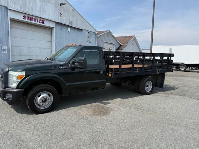 Stock: D31939 VIN: 1FDRF3G65FED31939 Year:2015 Make: Ford Model: F350XL Engine: 6.2L V-8 variable valve control, regular unleaded, engine with 316HP Mileage: 21149 Horsepower: 316HP Fuel type: Gasoline Transmission: TorqShift 6-speed automatic Color: White Class: 6 GVWR: 14000lbs Category: Stake Body Cab Type: Regular Wheelbase: 165In Rr Axle: 9750lbs Fr Axle: 4850lbs Brake Type: Hydraulic Front Tires: LT245/75SR17 Rear tires: LT245/75SR17 Features: - Spring Suspension -40 Gallon Fuel Tank -Bed Length 12FT Happy TUESDAY, from CRG Truck Sales, located in Elkton, Maryland. Call Rose today at 410-620-9800. We are ready to make a deal on your next purchase!