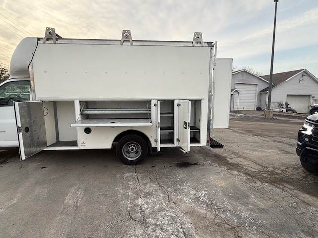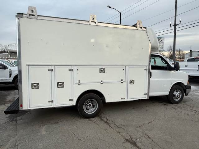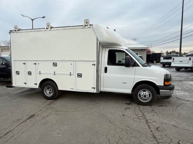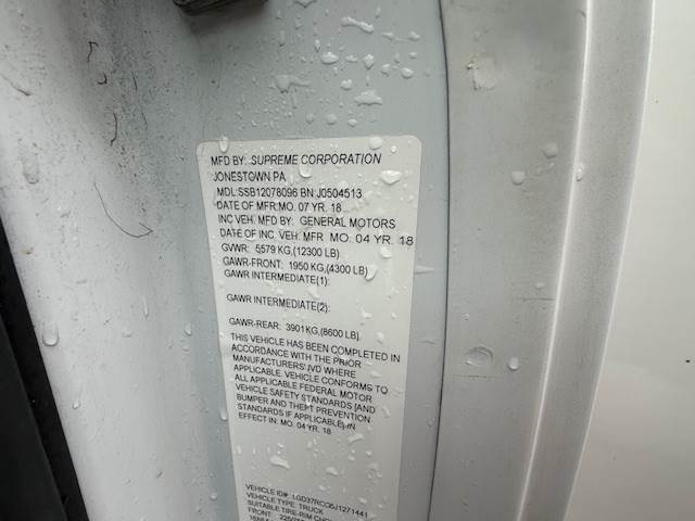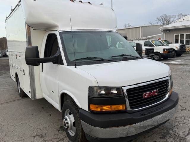Stock: 271441 VIN: 1GD37RCG5J1271441 Year:2018 Make: GMC Model: 3500 Cutaway Engine: Vortec 6L V-8 variable valve control, regular unleaded, engine with 341HP Mileage: 86251 Horsepower: 341HP Fuel type: Gasoline Transmission: 6-speed automatic Color: White Class: 6 GVWR: 12300lbs Category: Utility Cab Type: Regular Wheelbase: 139In Rr Axle: 8600lbs Fr Axle: 4600lbs Brake Type: Hydraulic Front Tires: LT245/75SR17 Rear tires: LT245/75SR17 Features: - Spring Suspension - 33 Gallon Fuel Tank -Rear Ratio 3.73 -4x2 -12FT Body