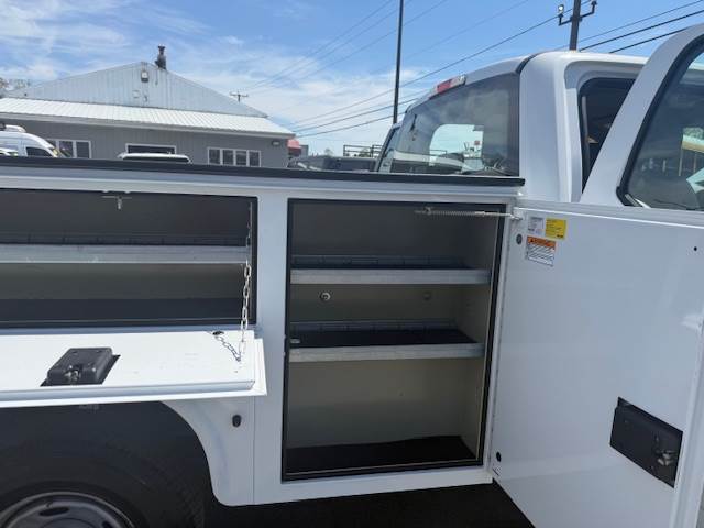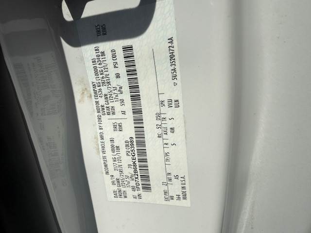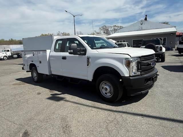 Stock: G53989 VIN: 1FD7X2B68KEG53989 Year:2019 Make: Ford Model: 350 Engine: 6.2L V-8 variable valve control, regular unleaded, engine with 385HP Mileage: 63341 Horsepower: 385HP Fuel type: Gasoline Transmission: TorqShift-G 6-speed automatic Color: White Class: 6 GVWR: 10000lbs Category: Utility Cab Type: Extended Cab Wheelbase: 164In Rr Axle: 6340lbs Fr Axle: 4800lbs Brake Type: Hydraulic Front Tires: LT245/75R17E Rear tires: LT245/75R17E Features: - Spring Suspension - Knapenheide 9FT -34 Gallon Fuel Tank -4x4 -Rear Ratio 4.30 -Power Windows & Locks -Hitch Stop by CRG Truck Sales today, located in Elkton, Maryland. We have the largest truck inventory in the tristate area. Call us today at 410-620-9800!!