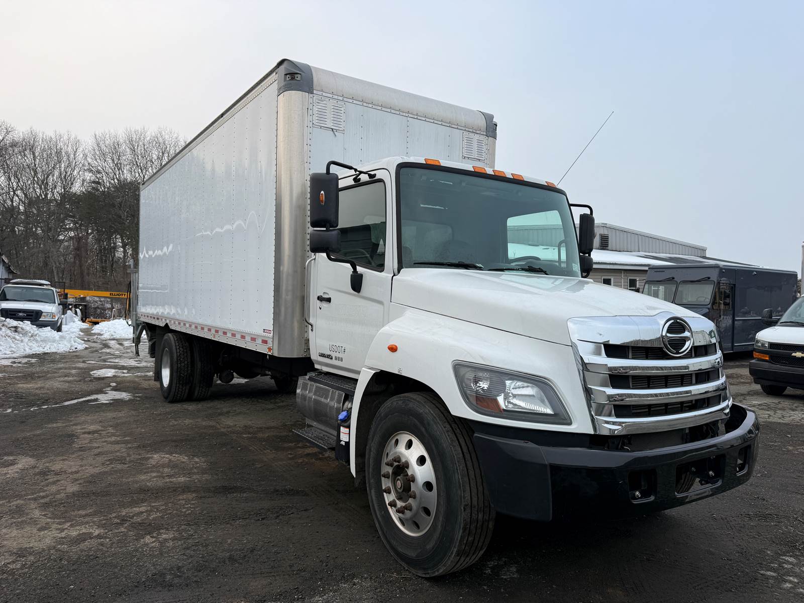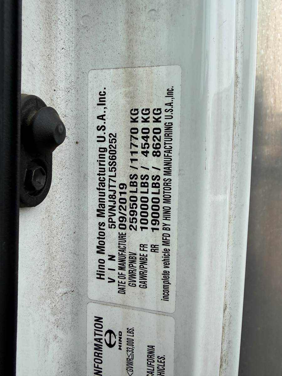 2020 Hino 268- 24ft Box Truck - Under CDL Stock: S60252 VIN: 5PVNJ6JT7L5S60252 Year: 2020 Make: Hino Model: 268 Engine: Hino 6 Cylinder 7.7 L Diesel Engine Mileage: 18672 Horsepower: 260 Fuel type: Diesel Transmission: AT Color: White Class: 6 GVWR: 25,950mi Category: Box Truck Cab Type: Regular Wheelbase: 270in Rr Axle: 19,000lbs Fr Axle: 10,000lbs Brake Type: Air Front Tires: 11R22.5 Rear tires:11R22.5 Features: -Morgan 24 ft x 96 in Wide x 97 in High Body -Requires DEF -Air Ride Suspension - Liftgate